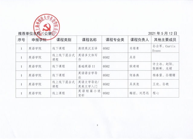 【公示】英语学院关于2021年国家级一流本科课程申报的公示