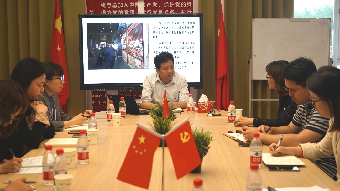 2021年5月19日,英语学院教工第二党支部与上海市松江区史志办党支部在我校松江校区5418党员之家开展共建活动。上海市松江区史志办党支部全体党员、英语学院教工第二党支部全体党员及支部联系的非党员教师、学校专职组织员张文洁等参加共建,活动由支部书记宋亮主持。