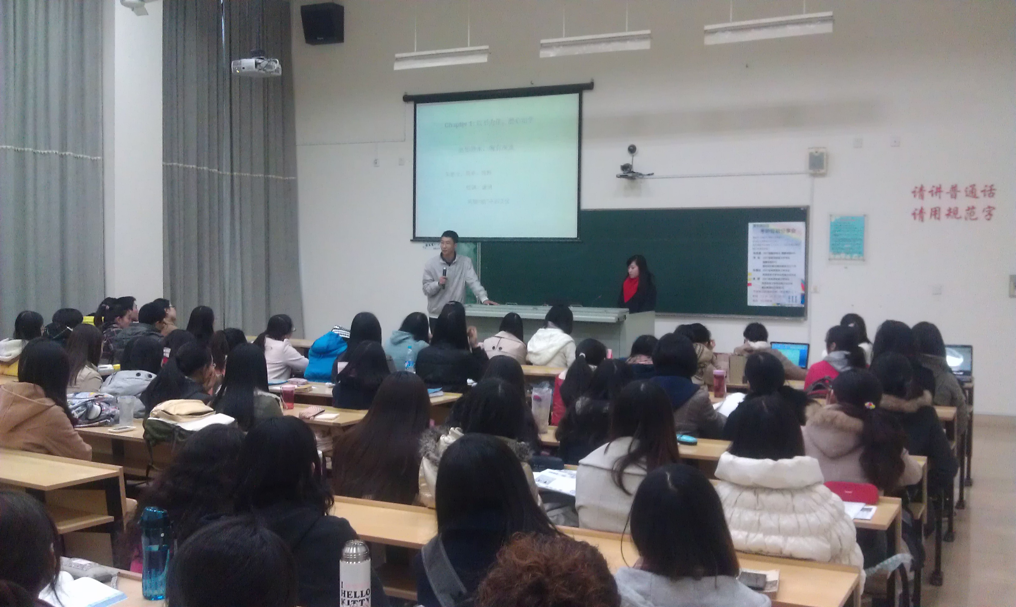 11月26日下午,英华导航服务中心“英华再回首”研究生经验分享会在松江校区5126教室成功举行。这场经验分享会邀请四位2011级研究生校友主讲,他们分别是就读英美文化方向的朱德全、就读跨文化方向的蒋璜、翻译硕士李铄和朱若菡。