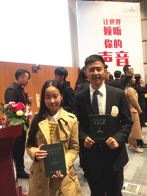 比赛前,两位同学在英语学院顾秋蓓老师的指导下积极备战,勤奋练习。在上海赛区决赛中,经过多个环节的激烈角逐,石劲宇、刘心语两位同学凭借扎实的功底、出众的才华、稳健的表现,赢得来自上海各知名高校和中国日报社英语专家评委们的认可,获得可喜成绩。