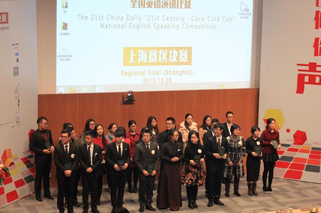 由中国日报社与可口可乐大中华区联合主办、 二十一世纪英语教育传媒承办的第21届中国日报社“21世纪•可口可乐杯”全国英语演讲比赛网络/校园选拔赛在11月底圆满结束。英语学院石劲宇、刘心语两位同学在上海赛区选拔赛中表现优异, 最终进入上海赛区决赛。