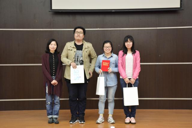 2016年4月19日晚6点,英语学院第20届“莎士比亚英语文化节”系列活动——第4届“英华杯”影视作品配音大赛在图文西厅顺利举行。英语学院肖维青教授担任此次比赛的专业指导教师,英语学院孙麟老师、熊颖哲老师、李磊老师,国际工商管理学院王颖老师,西方语系景飞鹏老师参与本次比赛的评审工作。本届配音大赛共吸引来自全校各院系的17支队伍。经过两轮比赛的精彩对决,来自英语学院2013级的林君、张爽、孙亚健同学脱颖而出,摘得本次配音大赛的桂冠。