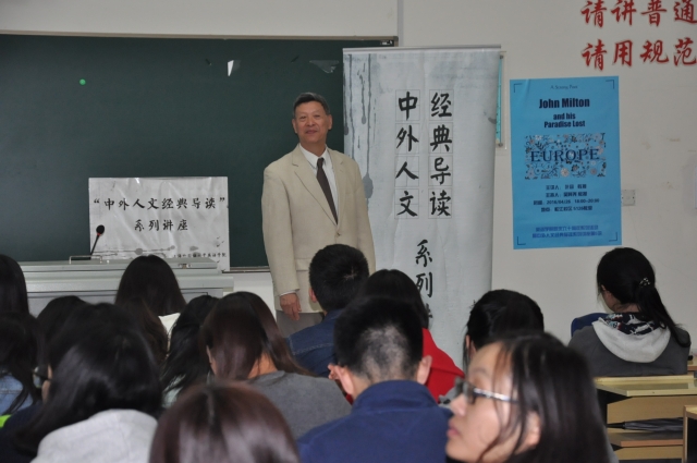 2015年4月26日-29日,时隔一年,美国加州大学终身教授叶扬先生再次应邀前来我院讲学,为全院师生们带来三场精彩的讲座,其中两场学术讲座“A Strong Poet: John Milton and his Paradise Lost”、“Michel de Montaigne and the English Essay”,一场讲述其自身求学经历的人文讲座“From Fudan to Harvard: Clippings from My Life as a Student of Literature”,分别由我院吴其尧、王欣和查明建三位教授主持。