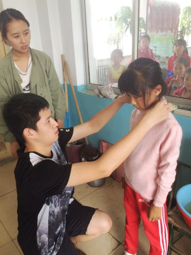 此外,由于当地的自来水设备极度匮乏,大部分低年级学生没有区分饮用水与生水的意识,个人卫生与健康知识也十分有限。队员在了解情况后,在原计划的公共卫生课基础上,教导低年级学生正确的洗手方式、饮水习惯、眼保健操的正确做法以及伤口处理的办法等。