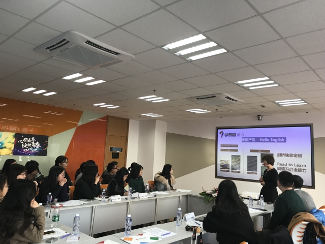 学而思上海分校英语部总监何小娇女士首先向来访的英华师生表示了热烈的欢迎,并向参访师生介绍了学而思的企业发展历程、产品线、教育理念、社会责任、员工福利待遇和职业发展路径等。其中,学而思秉承“科技推动教育进步”的理念,注重教育科技产品的研发,通过研发多种教育科技产品,促进教育质量的切实提升,研发“IPS智能练习系统”为学生提供更具个性化的教学方案,研发“魔镜系统”帮助老师及时调整课堂教学安排、提高教学质量,令参访师生赞叹不已。学而思秉承“让优秀的人做教育”的理念,通过待遇和产品质量的提升吸引人才,通过人才成长计划帮助员工变得更加优秀,给参访师生留下了深刻的印象。此后,目前在学而思上海分校英语部就职的英语学院16届校友姜智维学长与在场师生进行了交流分享。他分享了自己在学而思工作的心得感受,表示学生们的依赖与尊重、家长们的支持与认可、同事们的帮助与关心,令他在学而思工作的过程中感受到了满满的“获得感”;分享了他的求职经历和心路历程,深刻分析了自己最终决定投身教育培训行业的思考与体悟,令参访学生深受启发。接下来,双方进行了座谈交流,学而思方面对英语学院毕业生在工作中体现出来的专业才能、职业素养、人文底蕴、敬业精神表示了认可与赞赏,英语学院的辅导员们根据对毕业生的了解和观察分享了英华学子对学而思教育理念、责任态度的认同与肯定,学而思上海分校选聘部主管周晓菁女士、 选聘部朱卓谦先生详细解答了在场同学们关于求职渠道、福利待遇、发展前景等方面的问题。最后,英华师生亲身体验了学而思新研发的“魔镜系统”和“IPS智能练习系统”,参观了学而思即将全面投入使用的新总部,走进了学而思全新推出的“双师课堂”,并进行了合影留念。