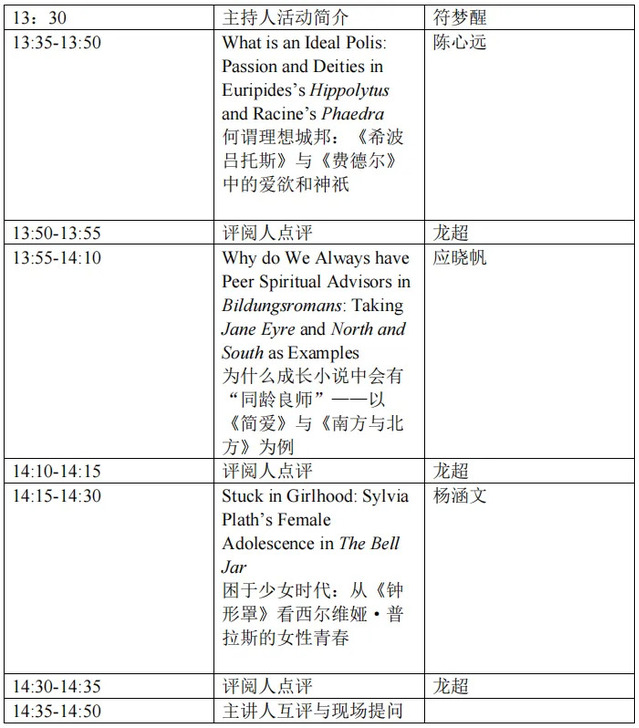 本期学术角论坛的主题是“文学中的社群与个体(The Community and The Individual)”,三位主讲同学将分别从理想城邦和个人成长入手,探索文学中社群与个体的相互影响。本次活动特邀龙超博士为论文点评人、符梦醒博士为主持人,2021级人文实验班陈心远、应晓帆、杨瀚文同学为主讲人。