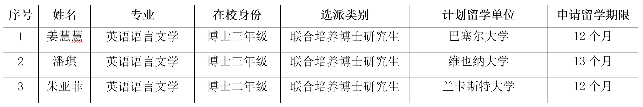 根据国家留学基金委“2023年国家建设高水平大学公派研究生项目”选派办法,我院积极组织开展了申报相关工作。经过自愿报名、导师推荐、学院审核等环节,我院拟推荐3位同学申报该项目(所在单位或个人合作渠道联合培养博士研究生),现将推选结果予以公示。