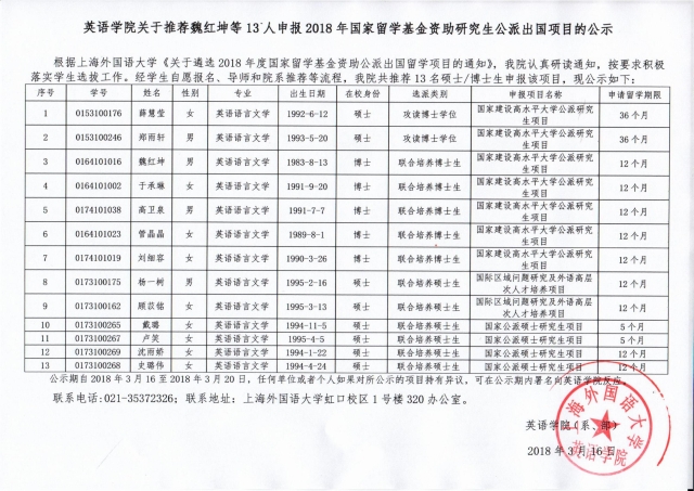 【公示】研究生公派出国公示函