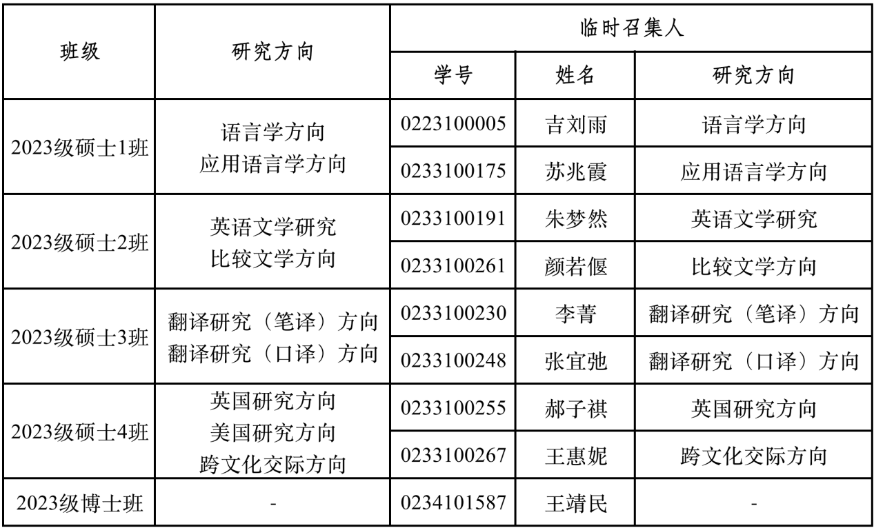 依据申请材料,经学院研究生学生工作组讨论,拟由以下同学担任各班级临时召集人。希望各位临时召集人在入学报到期间积极发挥纽带作用,做好管理与服务工作;也希望此次未能入选的申请人依然热心班级事务、勇敢展现自我,我们携手努力,共创美好的研究生生活!