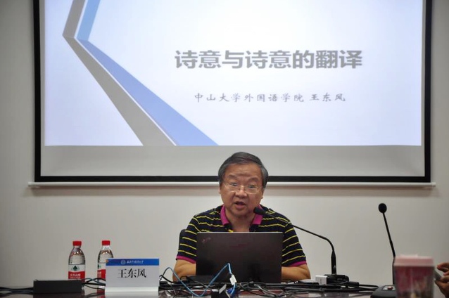 2018年5月11日晚18:00-20:00,上外研究生学术训练营(翻译研究类)第一讲于虹口校区图书馆604室顺利举行,由来自中山大学外国语学院的王东风教授主讲,主题为“诗意与诗意的翻译”,王教授深入浅出地告诉我们如何从诗学的角度欣赏诗歌、翻译诗歌、研究诗歌翻译。