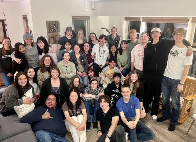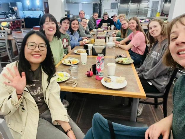 除了体验了美国丰富的学习资源和英语能力上的提升,我也很感恩能够遇到一群志同道合的朋友。在开学初我加入了学校的一个志愿公益社团,在三月份的春假期间和美国朋友们做了为期一周的志愿服务,包括在衣物捐赠站分拣衣物,为庇护所的居民盛饭、准备午饭等。整一个学期我们一起参与志愿服务,举办各种活动,结下了深厚的友谊,最令我感动的就是在我离开米苏拉的那天早晨,社团里的17个人私下约好早上7:30之前在食堂集合给我送行。看到她们在期末周还坚持给我举办这个欢送活动,我真的很惊喜也很感动,直到现在我们还保持着联系。因为这群人,这座被白雪封印的小城变得有了温度,感恩这些美好的遇见,让我在异国他乡也能感受到家人般的温暖。