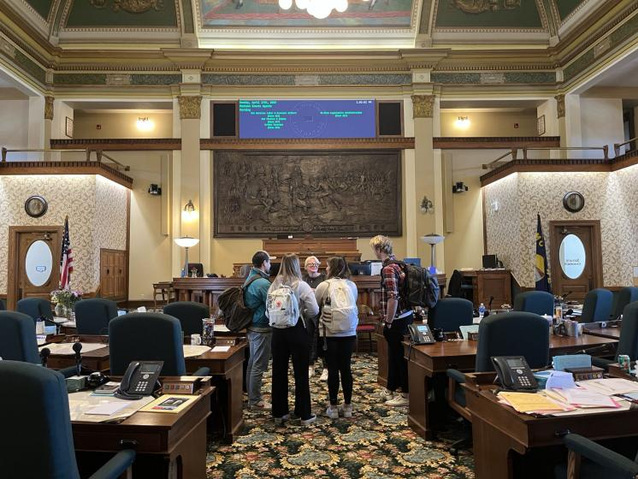 2023.4.16 蒙大拿州海伦娜(蒙大拿州首府),蒙大拿大学国际交流中心组织留学生一起参观蒙大拿州首府海伦娜,这是海伦娜的州议会大厦的会议厅