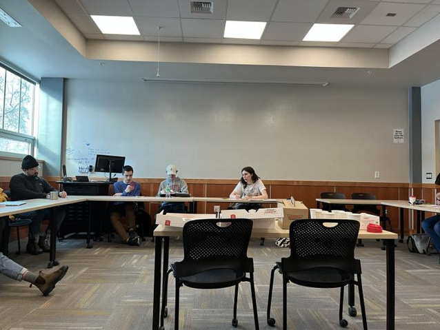 2023.3.5 liberal art building 科幻写作入门课第一节workshop研讨课,班上全体同学围圈进行讨论,中间是老师为我们准备的甜甜圈和咖啡
