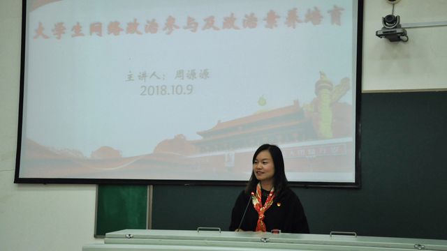 为响应互联网时代人才培养号召,增强新时代大学生党员网络政治素养,10月9日中午,应英语学院分党校邀请,日本文化经济学院党总支副书记周源源老师做客5124教室,为入党积极分子带来题为“大学生网络政治参与及政治素养培育”的主题党课。周老师用多个发人深省的典型事例广泛联系实际,坚持实事求是的务实原则,提高了同学们在互联网空间中的党性修养、坚定了同学们固守网络政治高地的决心。本场讲座由英语学院党总支副书记曹原主持。