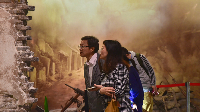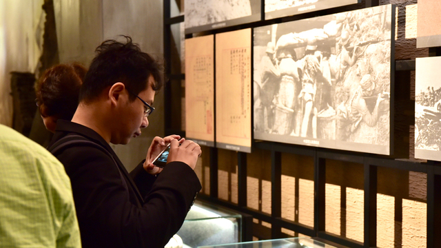 随后,英语学院师生党员一行前往抗战史料馆,史料馆以“牢记历史、珍爱和平”为主题,按时间顺序分为“战火初燃硝烟起”、“血雨腥风战淞沪”、“同仇敌忾捍山河”、“众志成城得胜利”四部分,通过丰富的史料和实物,历数了中国军民尤其是金山地区军民顽强抵抗日本侵略者的史实。师生党员认真倾听讲解,仔细阅读史料,用心感受历史,一幅幅血与火的画面呈现在眼前,这是中国人民近代以来争取独立自由史册上可歌可泣的一页,是中华民族历史发展进程中饱经沧桑的一章,震撼人心,引人沉思。