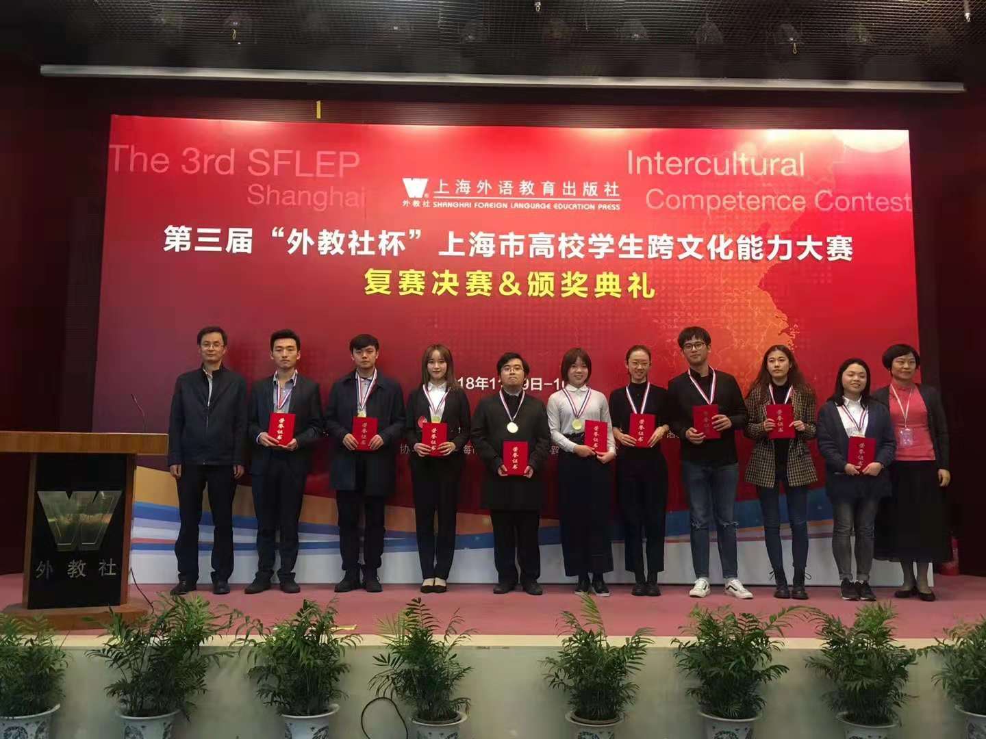 11月9日-10日,由上海市教委指导、上海外国语大学主办、上海外语教育出版社承办、上海外文学会和上外跨文化研究中心协办的第三届“外教社杯”上海高校学生跨文化能力大赛在上海外国语大学成功举办。在邓惟佳老师、孙璐老师的指导下,英语学院2017级熊歆、谢松桥、杨旭东三位同学凭借充分的赛前准备以及在复赛决赛中的优异表现,荣获本次大赛一等奖,邓惟佳老师、孙璐老师获得优秀指导教师奖。