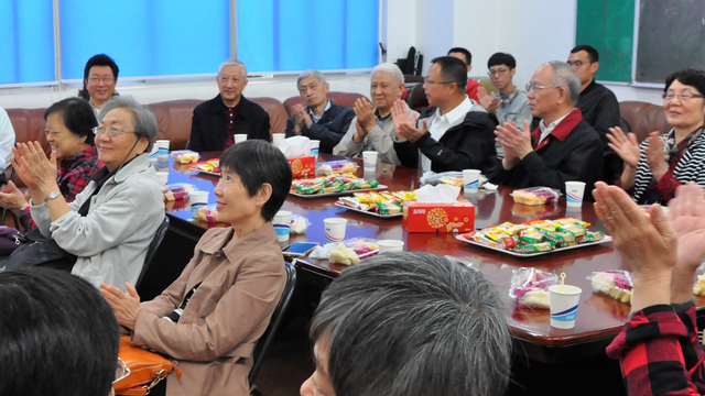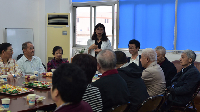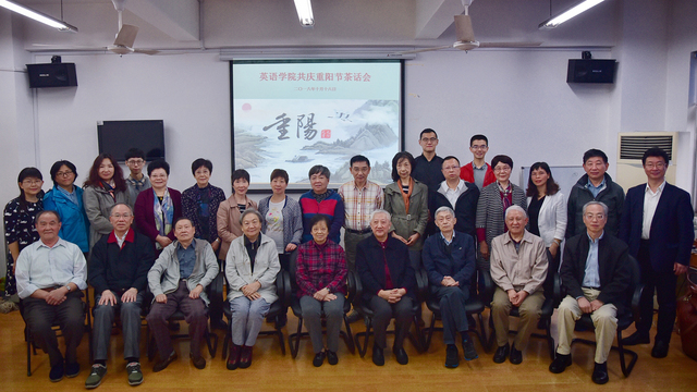 金秋逢十月,佳节又重阳;共酌金花酒,师情永流芳。10月16日上午,英语学院精心为退休老教师们安排了一场重阳节茶话会。邱懋如、何兆熊、王璜、吕光旦、吴定柏、章伟良、张定铨、史志康等二十位退休老教师在虹口校区英语学院会议室内欢聚一堂,共度重阳。英语学院查明建、杨雪莲、王欣、孙会军、曹原、工会主席高筠,以及多位青年教师和来自同年级的三位优秀学生代表参加了本次茶话会。