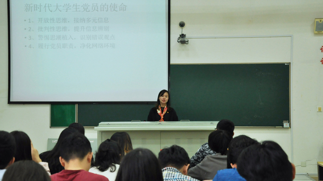 为响应互联网时代人才培养号召,增强新时代大学生党员网络政治素养,10月9日中午,应英语学院分党校邀请,日本文化经济学院党总支副书记周源源老师做客5124教室,为入党积极分子带来题为“大学生网络政治参与及政治素养培育”的主题党课。周老师用多个发人深省的典型事例广泛联系实际,坚持实事求是的务实原则,提高了同学们在互联网空间中的党性修养、坚定了同学们固守网络政治高地的决心。本场讲座由英语学院党总支副书记曹原主持。