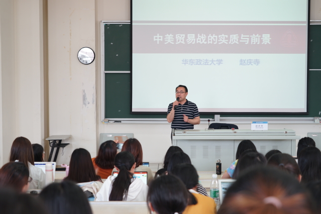 赵教授首先指出,自去年3月中美贸易摩擦产生以来,中国政府一直从维护两国共同利益和世界贸易秩序大局出发,积极通过协商对话的办法解决“贸易摩擦”,然而在诸多现实因素影响下,贸易摩擦最终升级为“贸易战”。他认为中美贸易战不仅仅是经贸方面的冲突,也是中美两国的“舆论战”、是维护世界贸易秩序大局的“正义战”,实质上是两个国家的总体竞争。它的出现与中美国家间的复杂关系不无关联。中美关系是世界秩序的压舱石、经济发展的稳定器,具有良好的历史传统。近年来随着中国的和平崛起,美国深深感受到包括中国在内的世界性大国对其权力、利益和话语权的威胁,单方面把中国当作试图改变美国主导下的世界秩序的威胁性大国,贸易战是美方战略误判的实际体现。