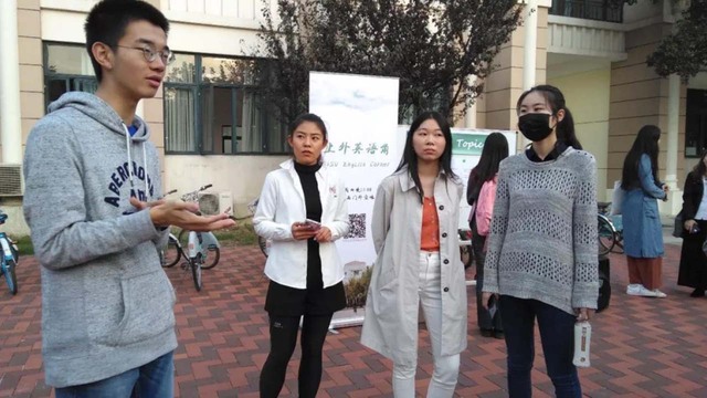 在演讲与口译练习之余,演讲社与口译社的同学也充分融入到整场活动中,与前来英语角练习的同学,一起练习口语,体会到了与平日的英语学习不一样的氛围。两个社团的同学表示,英语角的练习不同于往日课堂,在这里,很多同学都是第一次见面,因为对于英语的热爱所以聚在了一起,又在英语交流的过程中慢慢熟悉,用母语之外的语言,架起了“从陌生到熟悉”的友谊之桥。