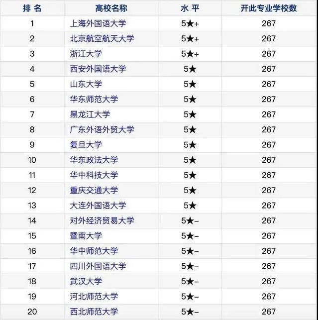 在267所开设本科翻译专业的学校中,我校排名全国第一。