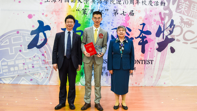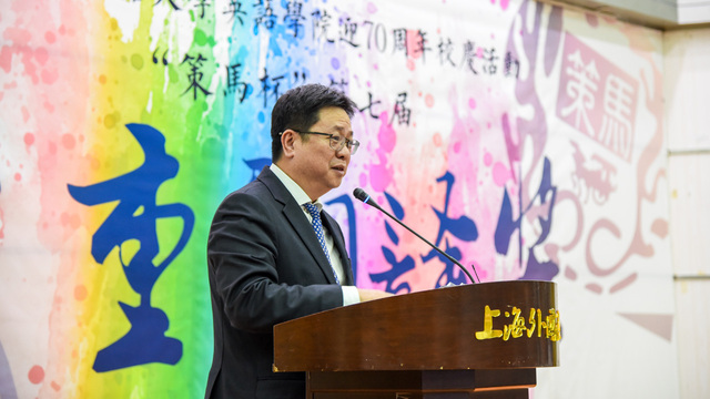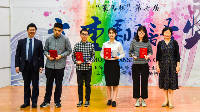 521日晚,为庆祝校庆70周年,英语学院在我校松江校区举办了“策马杯”第七届“方重翻译奖”辩论口译大赛暨颁奖典礼。当晚,松江校区图文东厅内座无虚席,济济一堂。上海外国语大学校长李岩松、副校长冯庆华、文学研究院前院长虞建华、英语学院原院长史志康、上海外语音像出版社前社长兼总编辑陈坚林等英语学科资深教授,前中国外交部翻译室主任、原驻外大使徐亚男女士,策马集团总裁助理、资深译员周敬棋先生,策马翻译上海分公司总经理张丽女士等嘉宾应邀出席。出席典礼的还有学校对外合作交流处、后勤工作管理处、学工党委/学生处、教务处、研究生院、发展规划与改革处、宣传部、国际教育学院、高翻学院、校庆办公室、上海外语教育出版社、上海音像出版社的领导老师,上海外国语大学松江外国语学校、三新学校、华师大松江实验中学的师生代表及英语学院党政班子成员和教师代表。