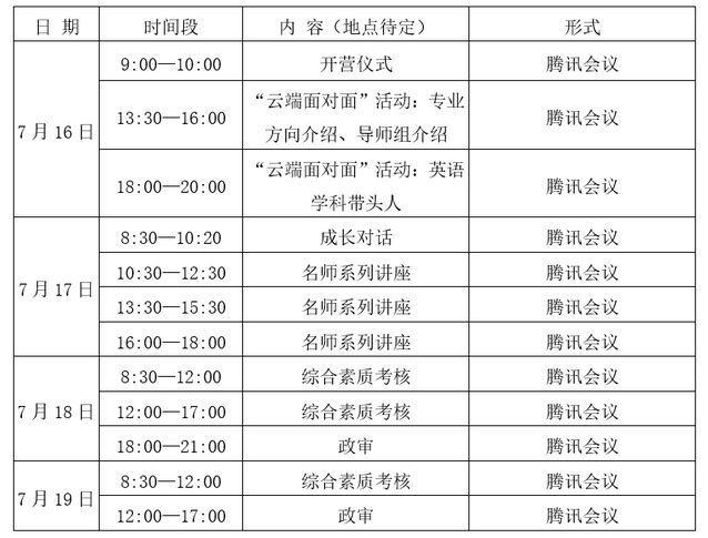 本次夏令营期间所有活动均通过网络平台进行,主要采取直播加视频会议的方式。