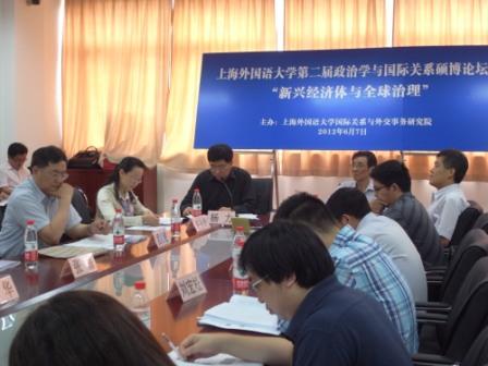 为进一步提高政治学和国际关系专业研究生培养质量,营造良好的学术氛围,2012年6月7日下午,上外第二届政治学与国际关系硕士、博士研究生学术论坛(简称“硕博论坛”)在虹口校区图书馆604会议室隆重举行。本届论坛由国际关系与外交事务研究院主办,得到校领导和校研究生部的大力支持。论坛的主题是“新兴经济体与全球治理”,吸引了众多政治学和国际关系专业以及校内其他专业研究生的积极参与。
