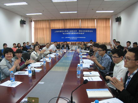 上海交通大学国际与公共事务学院博士生导师俞正樑教授、复旦大学国际关系与公共事务学院博士生导师陈玉刚教授、上海对外经贸大学国际政治专业主任吴晓锋副教授和上海社科院国际关系研究所焦世新副研究员针对各位研究生的论文进行了点评。除了论文所涉及的专业问题外,各位点评老师还就研究生论文选题、研究方法、投稿技巧等问题向大家传授了许多经验。