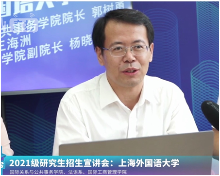 国际关系与公共事务学院院长、博士生导师、国际社会科学基金重大项目“习近平新时代中国特色社会主义外交思想研究”首席专家郭树勇教授于8月29日14:00参加上海外国语大学线上招生宣讲会。