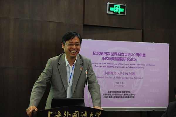 2015年5月23日,由上海市妇联妇女学学会、上海外国语大学国际妇女儿童研究交流中心和上海外国语大学国际关系与公共事务学院主办的“纪念第四次世界妇女大会20周年暨妇女问题国别研究论坛”在上海外国语大学虹口校区国际会议中心召开。上海市妇联主席徐枫、市妇联副主席黎荣、上海外国语大学党委书记姜锋、副校长杨力、市妇联研究室主任李苏华、市妇女学学会秘书长李汉琳、上外国际关系与公共事务学院院长郭树勇,以及我校学科办、科研处、对外交流处负责人等出席论坛。校妇工委常务副主任顾蔚以及来自姐妹院校的妇工委主任、妇女研究中心主任、我校妇女干部、研究生和博士生逾100人参加论坛。论坛由我校国际妇女儿童研究交流中心主任于朝晖主持。