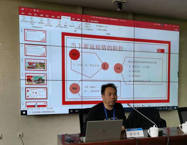 张绍铎老师将党史课与当前的新冠疫情防控相结合,“确保人民群众生命安全和身体健康,是我们党治国理政的一项重大任务”。在列举我国抗击疫情所取得的良好成绩后,他提醒大家更要注意我国面临的艰巨挑战,要求学院党员绷紧疫情防控这根弦。在新冠疫苗接种任务上,党员和入党积极分子应积极响应党和国家战略号召,用实际行动彰显使命担当,开打第一针,奋力筑牢新冠病毒免疫屏障。