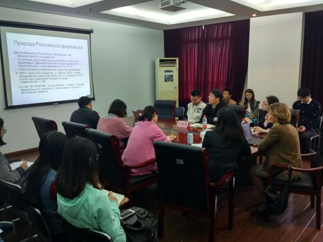 此次讲座主要围绕俄罗斯地方议会这一主题,具体阐述了其中的运作方式及特点。叶莲娜·米列什金娜研究员首先简要介绍了俄罗斯联邦议会与地方议会的职能分工,并对议会中议席的划分原则进行了说明。随后,她详细介绍了地方议会的职能、制度及其运作方式,并对各个地方议会之间的共同点和差异进行了梳理。最后,她对在座同学及老师的问题予以解答,并诚挚希望各位同学在今后的学习研究中加深对俄罗斯的了解和认识。