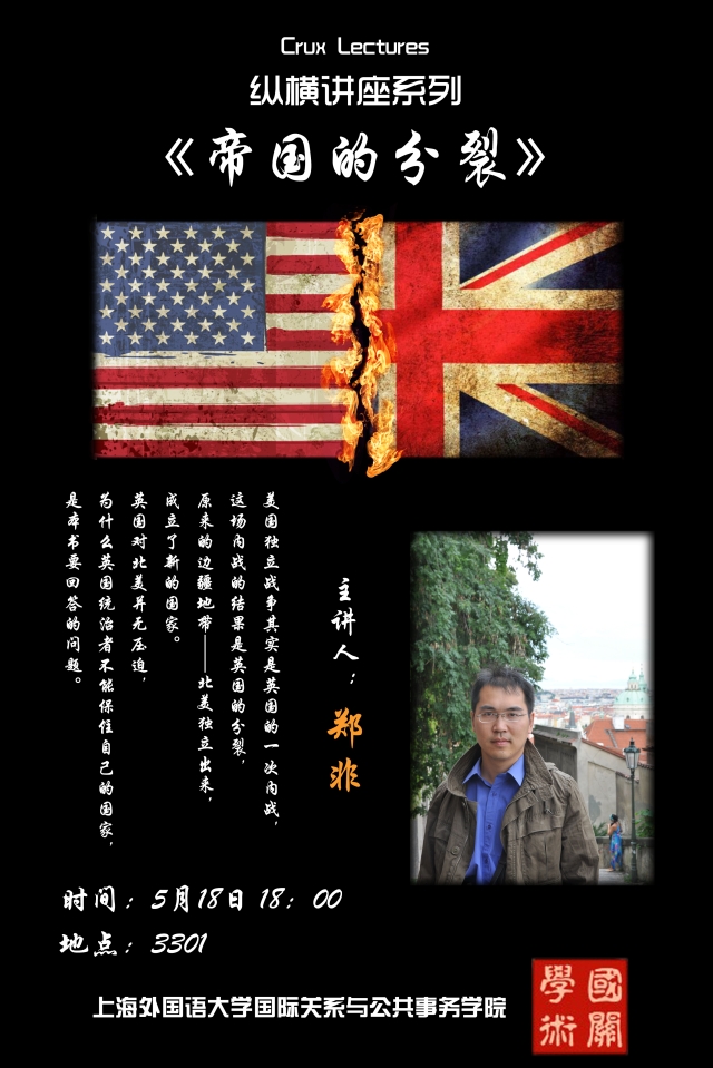 纵横讲座(Crux Lectures)是国际关系与公共事务学院学术部结合学院独特的专业而设置并倾心打造的学术品牌项目,坚持学院理念,主打“国际政治”特色,为广大同学提供一个良好的学术交流平台,旨在促进学院国内外的学术交流,提高学生的专业水平和学术修养。