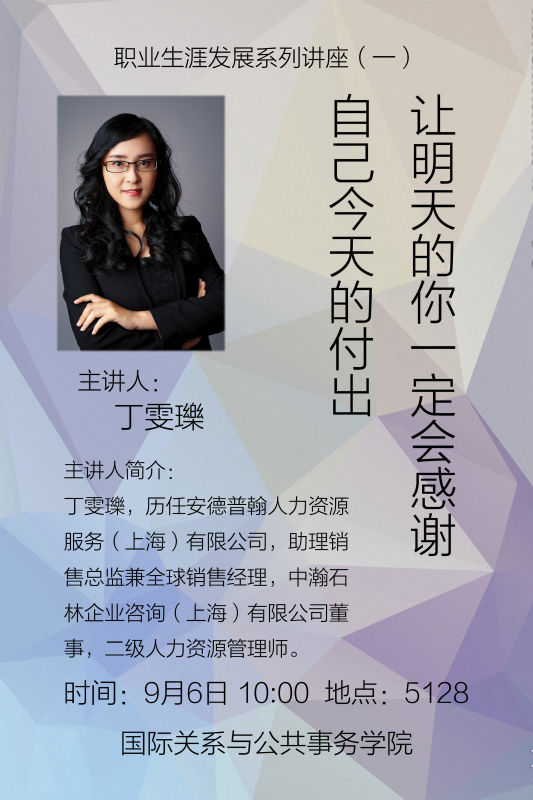 【讲座预告】职业生涯发展系列讲座:让明天的你一定会感谢自己今天的付出