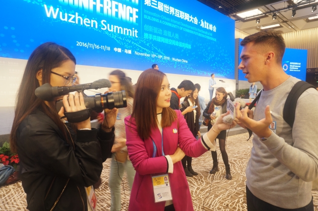 本届互联网大会的主题为“创新驱动造福人类,携手共建网络空间命运共同体”,而被称为“网络原住民”的青年正是未来这一发展的主力军。11月18日上午在乌镇互联网国际会展中心慈云厅举办的青年论坛正呼应了这一主题。论坛上,团中央书记处第一书记秦宜智与中国国家互联网信息办公室副主任任贤良分别表达了对青年推动科技创新的支持与希冀。另外,EMC公司全球副总裁周西柱、清华大学副校长杨斌、58同城CEO姚劲波等互联网大咖也分享了自己对未来互联网发展的感悟,鼓励青年人勇攀高峰。而来自美国乔治华盛顿大学、俄罗斯亚洲工业企业家联合会、中国达观数据等的几位青年代表也同大家分享了对互联网时代青年的机遇与责任的认识。青年论坛不仅为各国各地区青年进一步加深对互联网的认识、明白自己肩负的责任提供了良好的契机,同时也给了他们展示自己的机会,为他们提供了交流与合作的平台。论坛结束后,我院来自埃及的博士留学生马晓宇(Mahmoud Ahmed Mohamed Soliam)、来自俄罗斯的硕士留学生柯集力(Kirill Kholodenko)同来自吉布提的留学生山姆(Samatar Waberi Obsieh)一道接受了部分媒体的采访,在镜头前留下了他们作为国际化年青一代的风采。