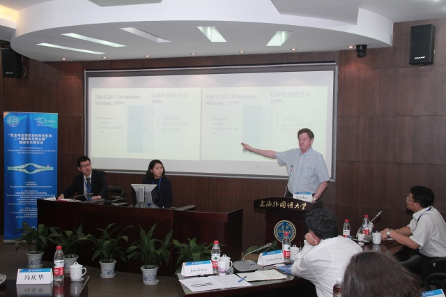 (3)举办了全球治理系列高端讲座。邀请近20名国内外著名专家学者来我院进行学术交流,如联合国教科文组织人力资源局局长Ruth de Miranda女士,原中国驻爱沙尼亚大使丛军,北京大学国际战略研究院院长王缉思教授,中国社会科学院政治学研究所所长房宁教授,中国人大制度理论研究会吕聪敏教授,加拿大滑铁卢大学的 Cooper教授等。举办G20研究著名专家约翰•柯顿教授主题演讲暨《二十国集团与全球治理》著作中文版新书发布会。