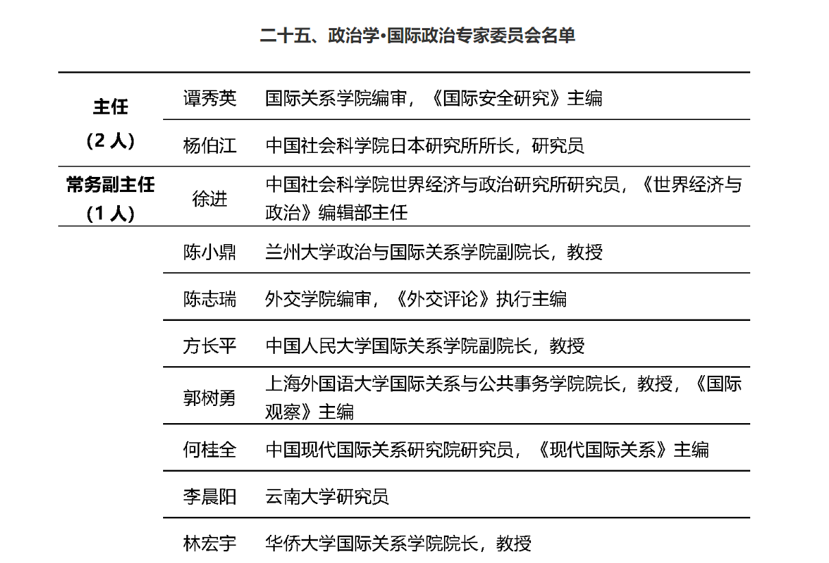 近日,中国社会科学评价研究院公示了27个学科的中国人文社会科学期刊评价专家委员会(2022)委员名单,上海外国语大学国际关系与公共事务学院院长郭树勇教授入选“政治学与国际研究类期刊评价专家委员会”委员。该委员会共有国际关系类成员23人、政治学类成员25人。中国人文社会科学期刊评价专家委员会由中国社会科学评价研究院筹建,由全国有代表性的同业专家组成,旨在改进完善学术期刊评价体系,充分发挥同行专家在期刊评价中的作用。