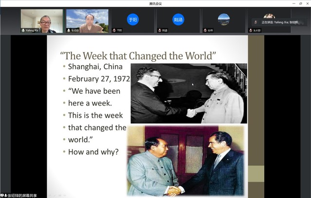 On the evening of 19 May 2022, SIRRAof SISUinvited ProfessorYafeng XIA to give a lecture on the theme “The Week that Changed the World:Nixon's Trip to China in February 1972.”