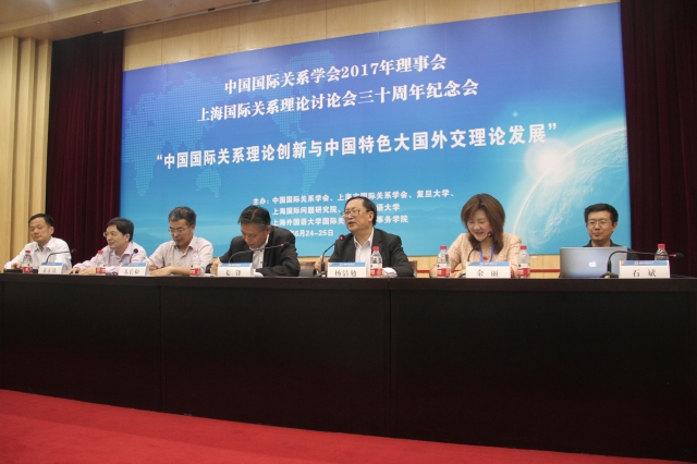 “中国国际关系学会2017年理事会暨纪念上海国际关系理论讨论会三十周年会议”24-25日在上海外国语大学举行,百余位知名专家学者、理论工作者齐聚上海,以“中国国际关系理论创新与中国特色大国外交理论发展”为主题展开深入探讨。本次会议由中国国际关系学会、上海市国际关系学会、复旦大学、上海国际问题研究院、上海外国语大学等主办,上海外国语大学国际关系与公共事务学院承办。30年前,时逢改革开放和思想解放风起云涌之际,以宦乡先生、汪道涵先生、陈启懋先生为代表的老一代理论工作者聚首上外,以少有的国际视野、战略眼光和中国情怀,专门商讨“具有中国特色的社会主义国家的国际关系基本理论问题”(汪道涵语),开启了新时期中国国际关系理论建设的光辉历程。30年后,一带一路和全球治理等中国特色大国外交波澜壮阔、民族复兴指日可待,老中青理论工作者再次相聚上外,回首三十年来中国特色国际关系理论建设历程,满怀信心展望未来。30年来,中国学者在国际关系理论研究领域走出了一条博学广纳、借鉴批判、融会贯通、理论创新的发展道路,与会者一致认为,这是政治学特别是国际政治理论发展和学科建设史上的一件盛事,必将对学术发展和学科建设起到重要的推动作用。召开此次纪念会议和研讨盛会,将有助于学者凝聚力量,积极参与当代国际关系和中国外交的伟大实践,深入进行理论探索和创新建设。