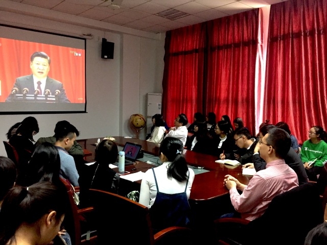10月18日上午9:00,中国共产党第十九次全国代表大会在北京人民大会堂开幕。国际关系与公共事务学院党总支组织老师和同学在国关学院会议室5155B观看了十九大开幕会。开幕会上,习近平总书记对过去五年的工作和历史性变革做了全面、深入的报告,深刻阐释了新时代中国共产党的历史使命。