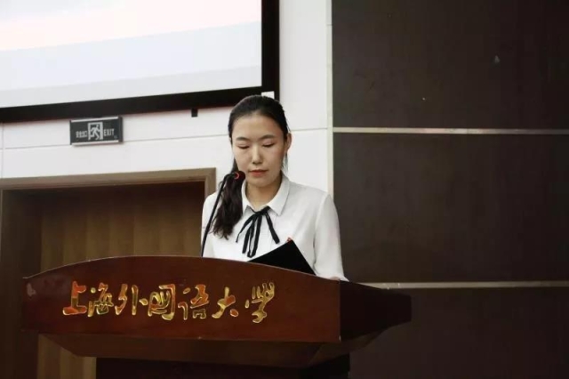 教工党支部杨晔老师为我们讲述她对于“传播中国声音”这一主题的理解,杨晔老师以“上外中国学全英文硕士项目”为例,向大家具体介绍了上外中国学及其实习实践课程的概况,并探讨了引领外国学生深入中国各领域的意义与成效。
