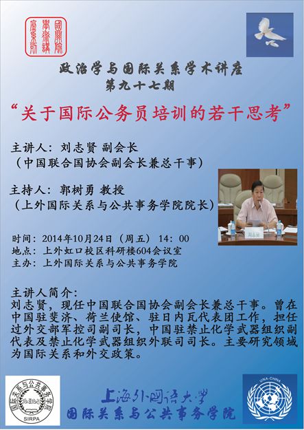 报告人简介:刘志贤,现任中国联合国协会副会长兼总干事。曾在中国驻斐济使馆、驻日内瓦代表团、驻荷兰使馆工作,先后担任过外交部军控司副司长、中国驻禁止化学武器组织副代表及禁止化学武器组织外联司司长。主要研究领域为国际关系与外交政策。