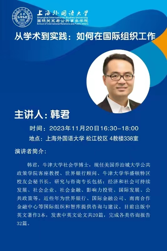 韩君,牛津大学社会学博士,现任美国乔治城大学公共政策学院客座教授、世界银行顾问、牛津大学华盛顿特区校友会秘书长。研究与咨询专长包括: 经济和社会可持续发展、社会企业、社会金融、影响力投资、国际发展、公共政策等。近些年为世界银行、国际金融公司、南南合作金融中心等国际组织和智库提供咨询与建议。目前出版中英文著作3本,发表中英文论文共20篇,完成各类咨询报告32篇。