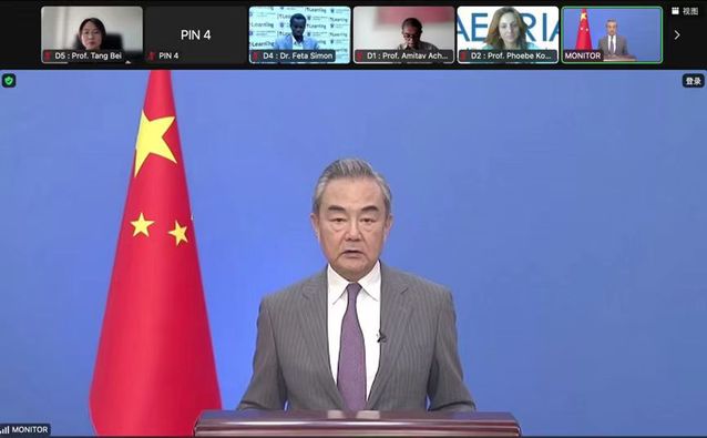中共中央政治局委员、外交部长王毅作为全球智库大会特邀嘉宾发表视频致辞。王毅提出,世界秩序的变化取决于各国抉择,应坚持团结合作,共谋世界发展,共创更好未来。