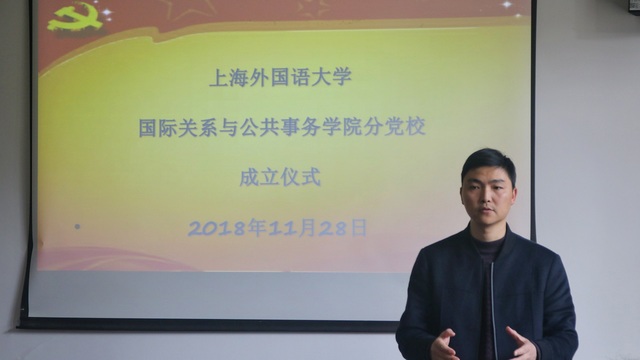 11月28日12点,国际关系与公共事务学院分党校成立仪式暨入党积极分子培训班开班仪式成功举行。国际关系与公共事务学院党总支书记房叶臣、党总支副书记蒋灏出席,学院全体入党积极分子参与了此次活动。仪式由党总支副书记蒋灏老师主持。