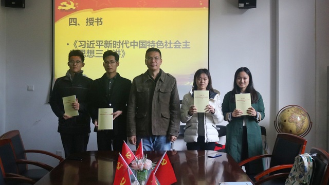 随后举行了本次仪式的揭牌仪式,由国关学院党总支书记房叶臣老师与研究生党员代表张永琪同学共同为“国际关系与公共事务学院分党校”揭牌。入党积极分子代表唐千智同学立足当下,展望未来,表示入党积极分子应当以高标准要求自己,通过学习和实践提高自己的党性修养,做出了四点承诺,最后表达了早日能够入党的期望。本次入党积极分子培训班各小组组长分别对组名及组员进行了介绍。随后国关学院党总支书记房叶臣老师向各位组长赠书《习近平新时代中国特色社会主义思想三十讲》。
