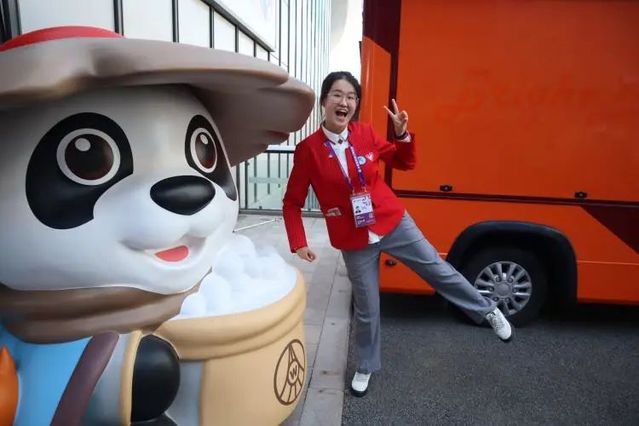 在这期间,我和同组的搭档配合也十分默契,虽然两人也是第一次进场馆,但每天面对任务时,我们总会先默契的进行一次“踩点”,以便合理规划。记得一天有一组紧急接待任务安排给我们组,当时还下着雨,但我们还是冲进雨中从休息处赶往场馆,好在完美完成任务。在进博会开幕前,我们去场馆进行实训,我每天都会看到很多工人蹲在地上吃盒饭,甚至有些连饭都顾不上吃。我想,正是这些背后的辛苦和努力,才保证了进博会的圆满成功。以及在国家展的工作中遇到的每一位同学和伙伴,他们都会热情负责的互相帮助。