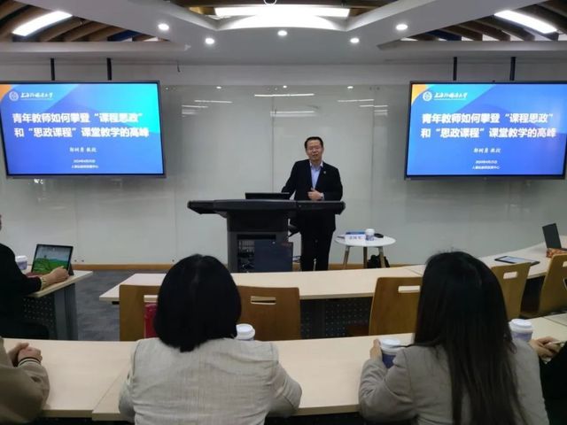 4月25日,上海外国语大学国际关系与公共事务学院院长、习近平外交思想研究院首席专家郭树勇教授应学校师工部等部门邀请,在行政楼129会议室作《青年教师如何攀登“课程思政”和“思政课程”课堂教学的高峰》的主题讲座。郭教授在讲座中介绍了自己20多年来从事马克思主义国际关系等教学科研的心得,结合自己主持的教育部课改思政示范课程教学经验和担任有关教学竞赛评审工作体会,向在座各位青年教师和博士生列出了思政教学中的11个要义。选题、素材、语速、教姿、板书、时间把握等基本教学问题不容忽视,处理守正与创新、理论与实践、政治与学理、本国与世界等各类关系更需特别注意。出席讲座的除了皮凡倩部长等机关领导之外,主要是青年教师、学院思政教师以及国关学院政治学博士生。