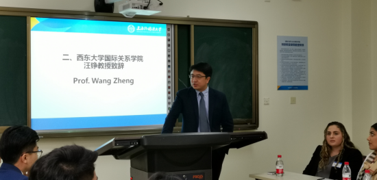 (图:美国西东大学外交与国际关系学院汪铮教授致辞)
